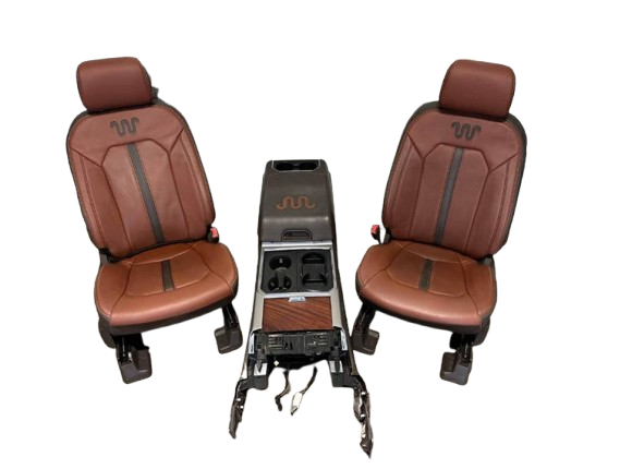 A set of like new King Ranch leather front seats and center console for 2017-2023 Ford F250, F350, and F450. These heated seats are in perfect shape and come with the airbag already installed.